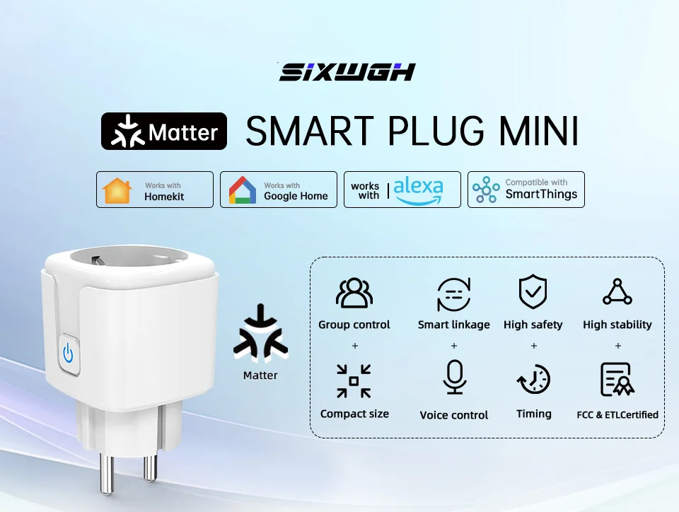 16A/20A EU Smart Plug Power Outlet Matter Smart WiFi Socket Mini Smart Plug for HomeKit SmartThings Works with Siri Alexa