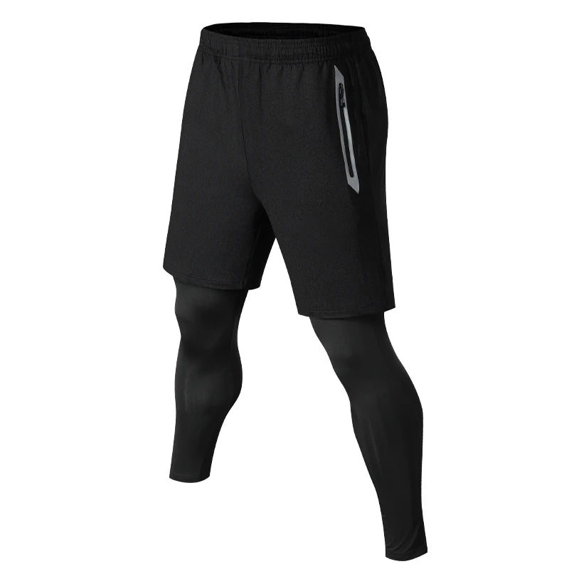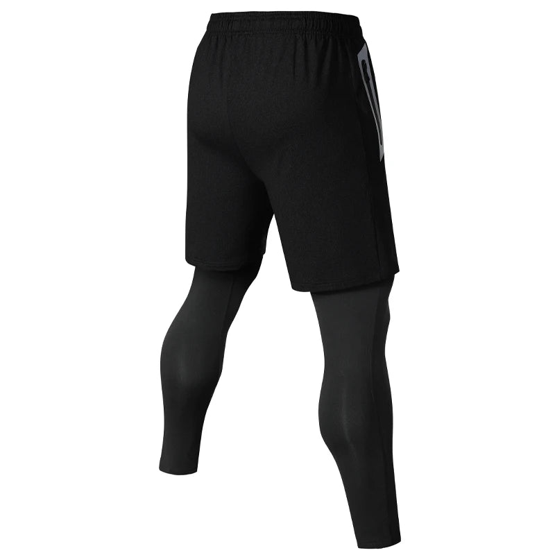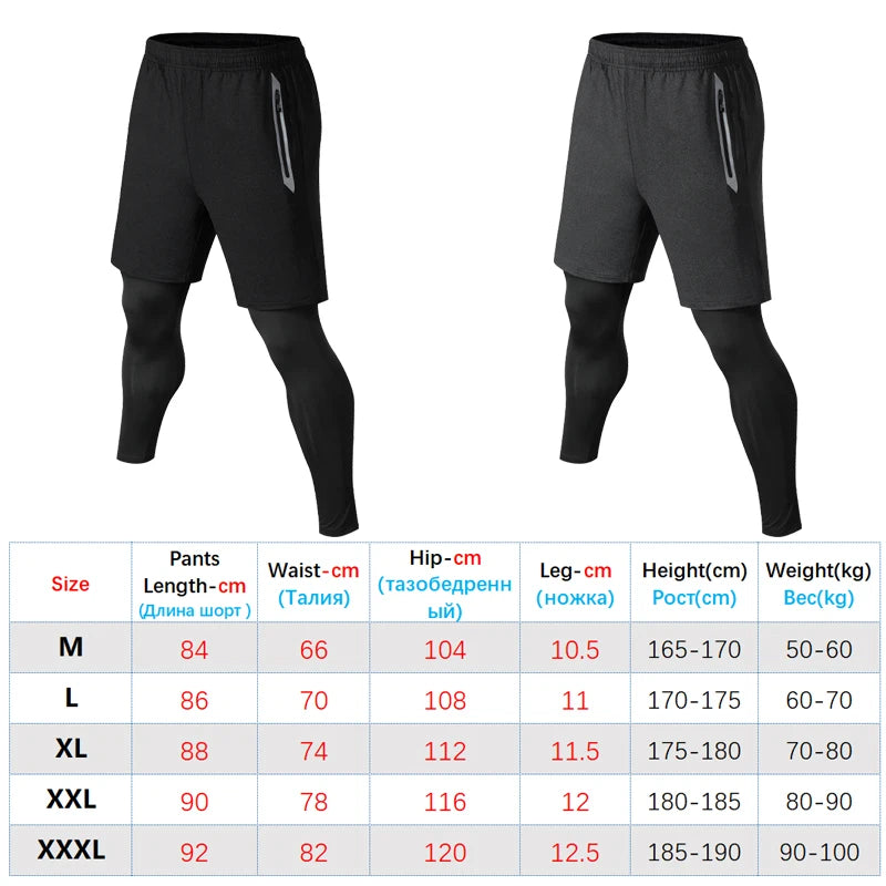 Men Sports Trouser 2 In 1 Compression Training Legging Breathable Joggers Zip Pockets Running Double Deck Fitness Gym Pants