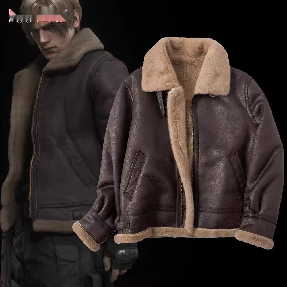New 2025 Biohazard Resident 4 Leon S Kennedy Evil Costume Leather Coat Cosplay PU Faur Jacket Long-sleeve Winter ★ ★ ★ ★
