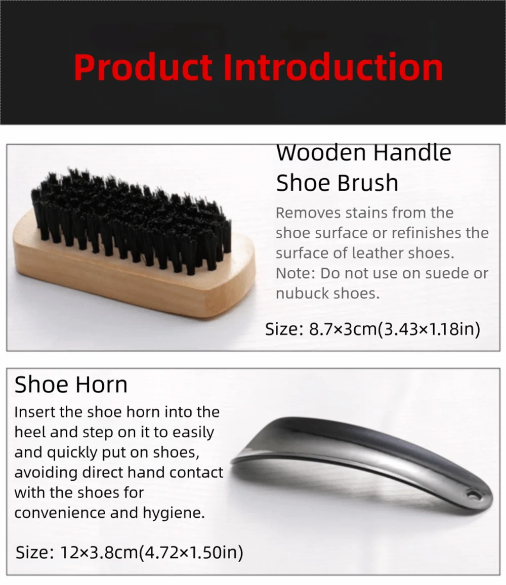 - TINY AND PRACTICAL-Shoe care set that is perfect for home use or traveling use. so you can keep your shoes looking sharp no matter where you go.